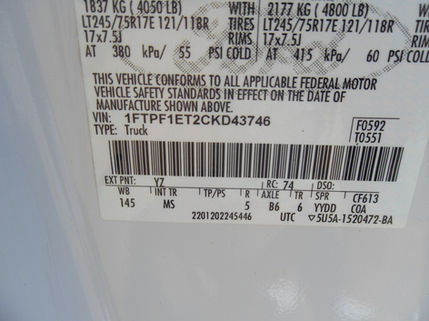 This 2012 F150 would make a good little work pickup. It has the 3.5 EcoBoost that will give it lots of power. It has the Max trailer tow package, and the heavy duty payload package, to hadle all yout trailer towing needs. It has the 36 gallon fuel tank and it has an engine block heater.